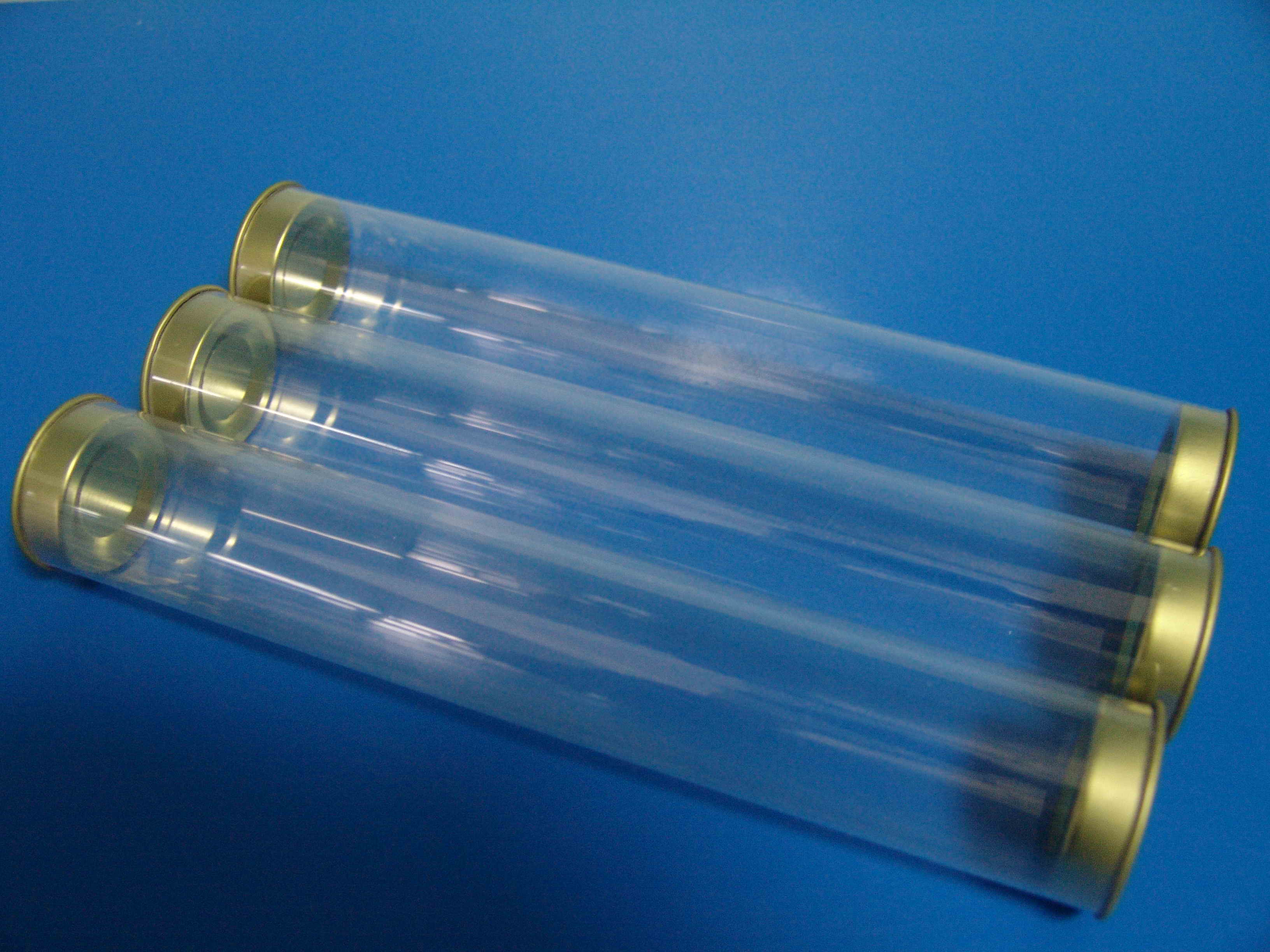 配铁盖透明筒/PETG配铁盖圆形管/塑料配铁盖圆筒/塑料包装