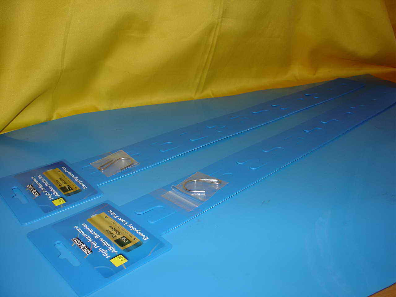 2) Hang Strips are designed to help you merchandise your products in     prominent area and so create impulse buys, it is perfect for promotions,special offers and placing accessories next to the main product i.e brushes next to paint.