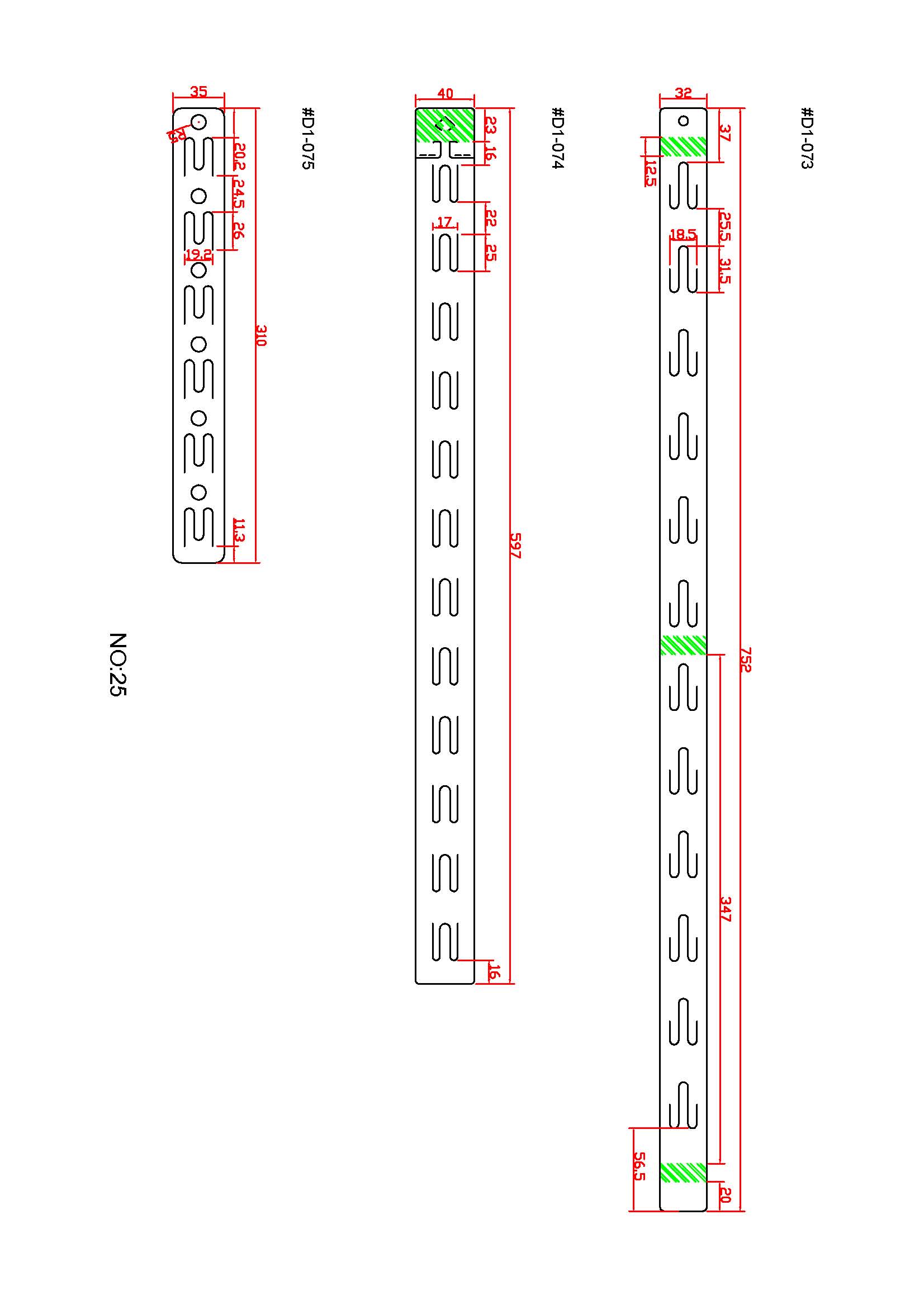 vertical row. Simply cut off the length needed, load the product
